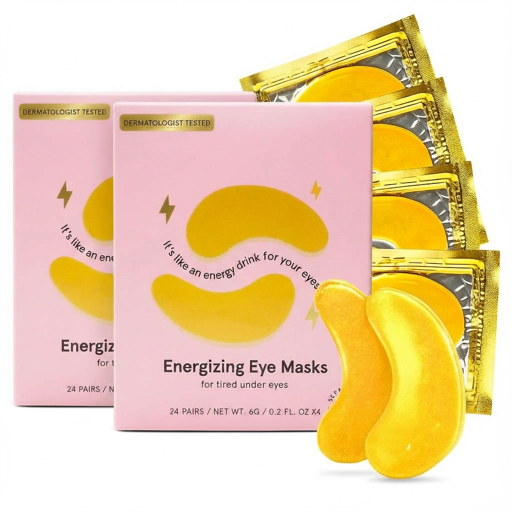 Revive and refresh your eyes with the 24 Pairs Collagen Gel Eye Mask, the ultimate under-eye treatment designed to reduce puffiness, smooth fine lines, and brighten dark circles. This vegan and cruelty-free under eye patch formula blends collagen, caffeine, hyaluronic acid, and niacinamide to restore hydration and elasticity around the delicate eye area. Each hydrogel under eye patch delivers an instant cooling effect that helps reduce swelling and dryness, making it ideal for tired eyes, morning routines, or post-screen fatigue. Collagen promotes a smoother, plumper look, while caffeine and hyaluronic acid help diminish the appearance of eye bags and improve skin tone for a refreshed, youthful finish. Individually sealed for freshness, these under eye masks for dark circles and puffiness are easy to use at home or while traveling. Apply to clean skin for 15–20 minutes to enjoy spa-like results. Suitable for all skin types, including sensitive skin, this dermatologist-tested eye care essential fits seamlessly into any daily skincare routine. Free from parabens, sulfates, and artificial fragrance, our hydrating eye patches deliver visible results with every use. Keep them chilled for an extra cooling boost and enjoy brighter, smoother, energized under-eyes day after day.